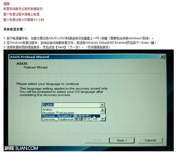 華碩筆記本自帶系統恢復教程 ... [更多詳細]