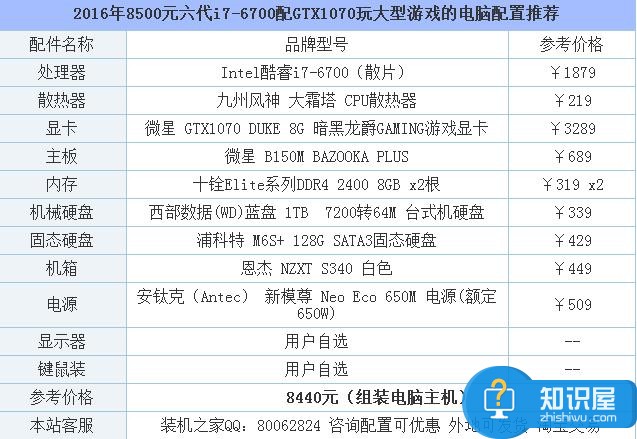 2016年8500元六代 i7-6700配GTX1070玩大型游戲的電腦配置推薦 ... [更多詳細]