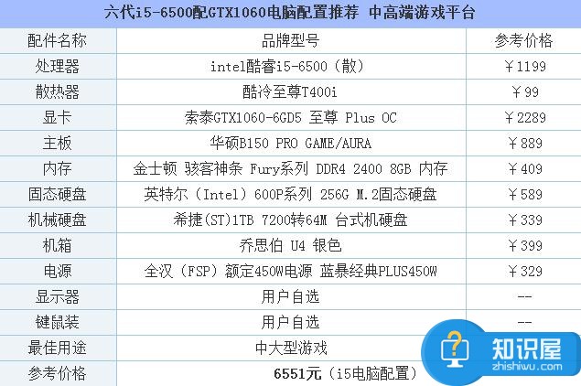 土豪發燒友 8600元六代i5-6600K獨顯定制DIY主機配置推薦 ... [更多詳細]