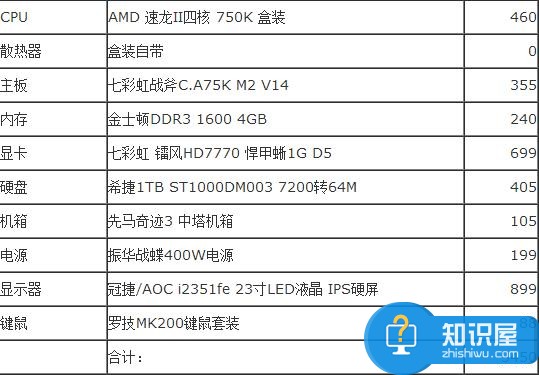 3500元750k+HD7770電腦推薦 23寸ips屏整機配置單 ... [更多詳細]