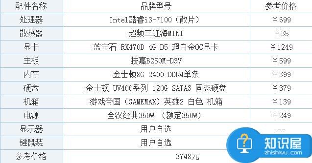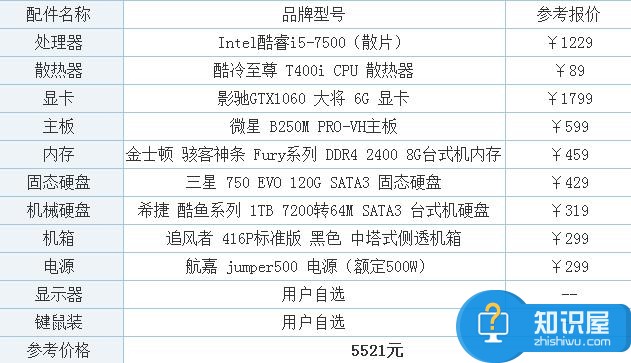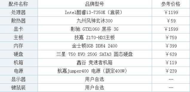 i3-7100配GTX1050臺式組裝機配置方案 2017玩主流游戲電腦配置單 ... [更多詳細]