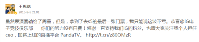 另有消息稱,除王思聰外,前斗魚主播楊豐智也在自然人股東之列。楊豐智系前斗魚知名LOL游戲主播。另悉,LOL選手若風,以及包括安德羅妮等在內的《爐石傳說》全部主播也已私下簽約熊貓TV。