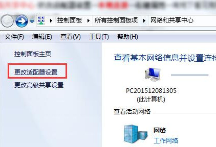 1、依次打開網絡共享中心-更改適配器設置,如下圖所示: