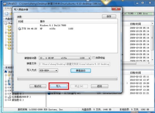 第三步:也就是繼續上一步的操作,我們點擊“寫入”繼續,意思是把整個iso鏡像包寫入到我們的u盤里面,如下圖:
