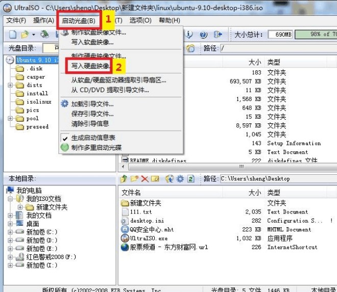現在開始寫入Linux系統的iso鏡像包到u盤,如下圖: