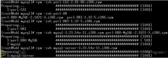 #rpm –ivh mysql-3.23.54a-11.i386.rpm perl-DBD-Mysql-2.1021-3.i386.rpm
