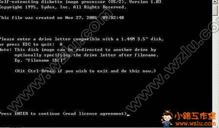 此時會提示用戶軟盤啟動的文件可以重新指引到另外的驅動器,一般不用管它,按回車以查看許可及保證協議: