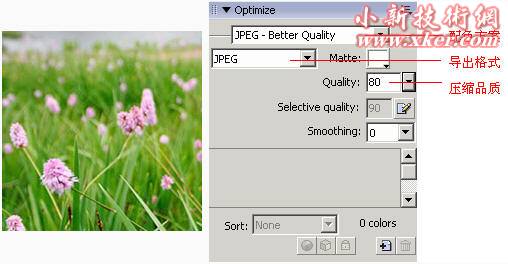 1.首先確定你的顏色數,256色的用GIF和PNG格式,256色以上的用JPG格式。