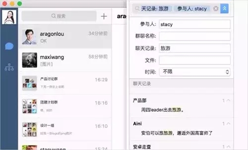 除了表情、紅包外,企業微信1.1版本支持多條件復合搜索,更快捷的找到所需內容。