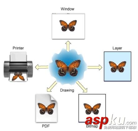 (輸出目標可以是PDF文件、Bitmap或者顯示器的窗口上)