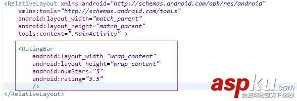 <RatingBar android:id="@+id/rb_normal" style="@style/roomRatingBar" android:layout_width="wrap_content" android:layout_height="wrap_content" />