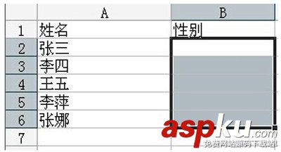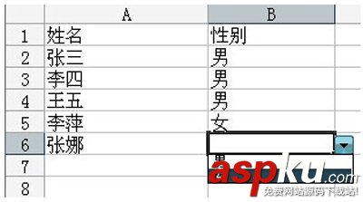 確定之后,你就可以看到,在“性別”這一列下,都出現(xiàn)了“男,女”下拉菜單;