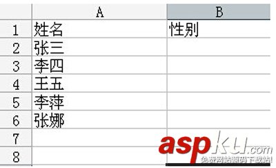我以輸入男女為例,打開一個Excel,我們要在性別這一列中設置一個下拉菜單,內(nèi)容為“男”“女”;