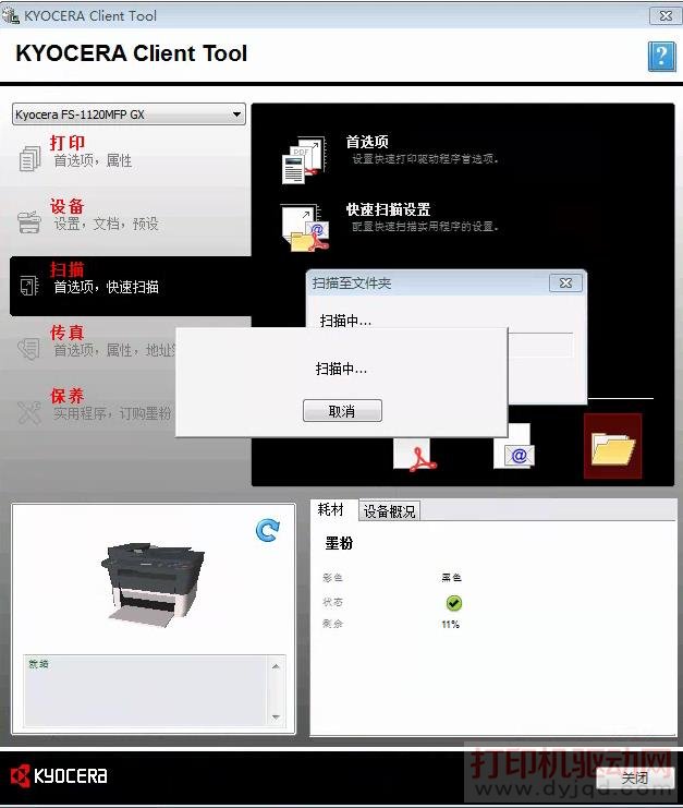 2、打開“KYOCERA Client Tool”后在頁面中間可以看到開始快速掃描,根據(jù)需求可以選擇不同的掃描方案