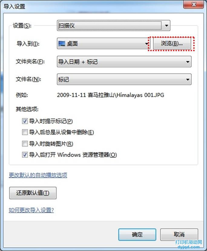 6.點擊“導入設置”可更改保存路徑和其他設置,點擊“瀏覽”可更改保存路徑,如圖(5);