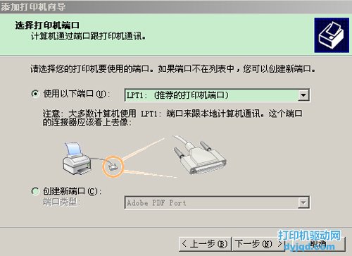 4.明確打印機使用的端口,針式打印機一般采用LPT1端口。用鼠標單擊“ ”按鈕,如下圖所示。