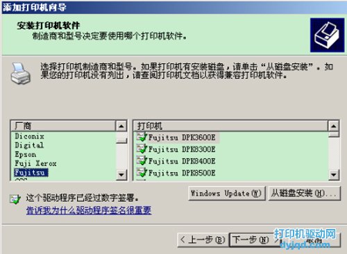 廠商內選擇FUJITSU(富士通),型號選擇DPK3600E。