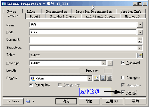 第3步:打開T_ID列的屬性設置,設置自動生成