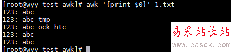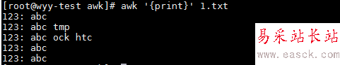 awk '/123/{print}' 1.txt #打印1.txt中匹配123的那一行內容