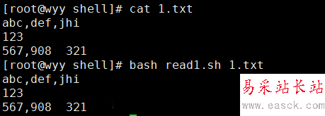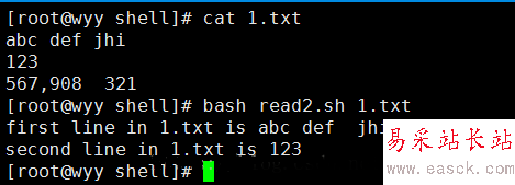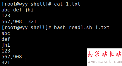 示例2:如果不修改變量IFS的值,系統(tǒng)默認(rèn)按照IFS的原值,按空格來讀取文件