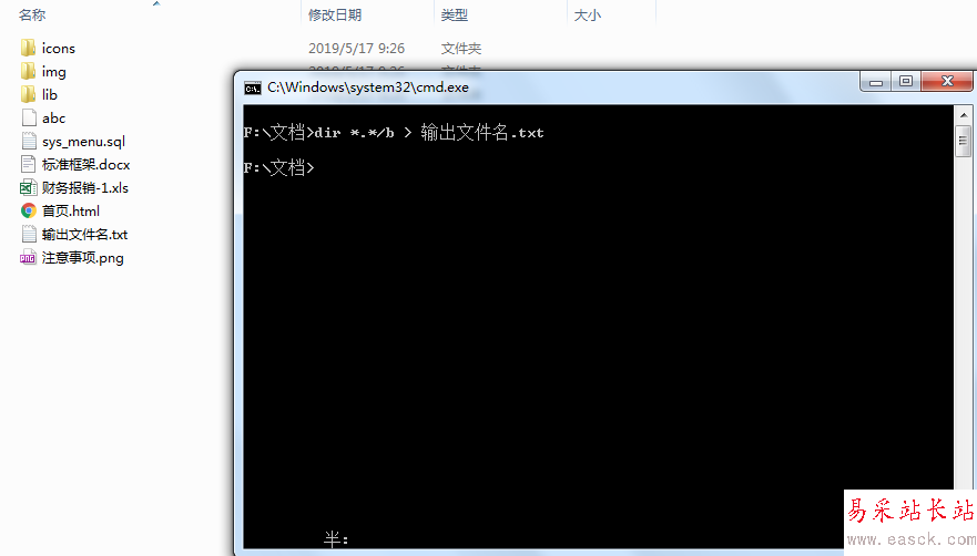 1、當(dāng)前目錄下打開CMD控制臺窗口,執(zhí)行如下bat命令:dir *.*/b>文件名.txt