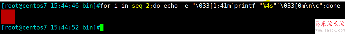 上圖中,熒光部分seq 2控制打印兩行,熒光%4s部分控制每行打印多少個空格,通過/n/c來控制一次循環(huán)后換行的問題。
