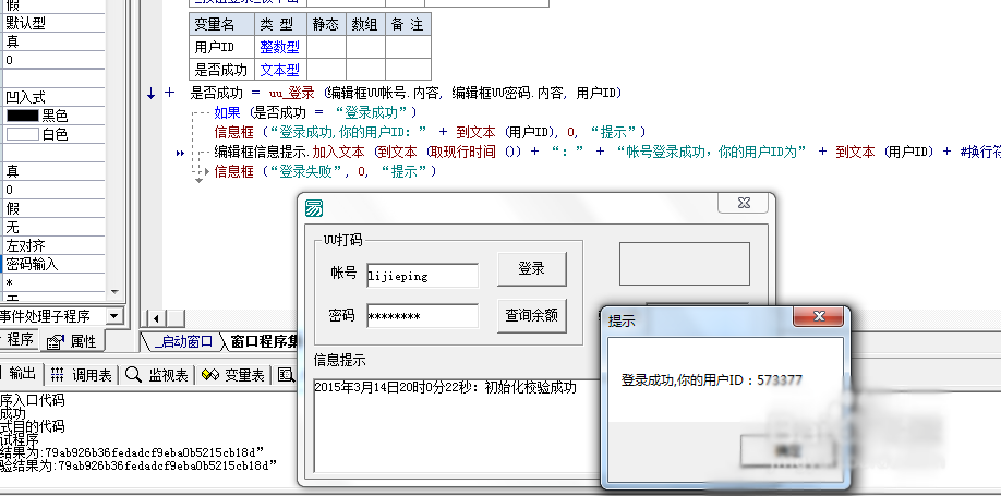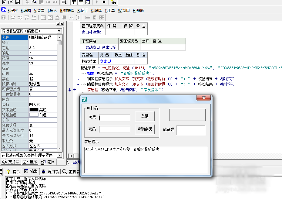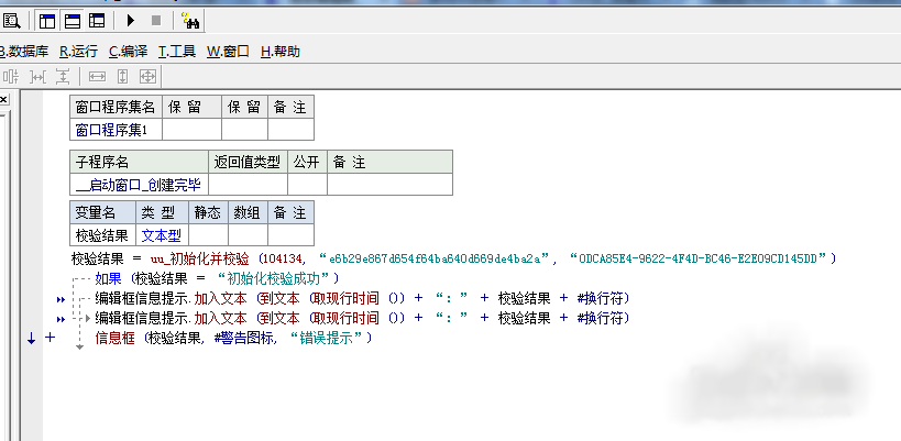 8、獲取校驗碼后,在__啟動窗口_創(chuàng)建完畢,我們就開始校驗,添加如下代碼!當然也可以參考UU平臺提供的例子,都是比較容易的!可以運行一下,是否驗證成功!