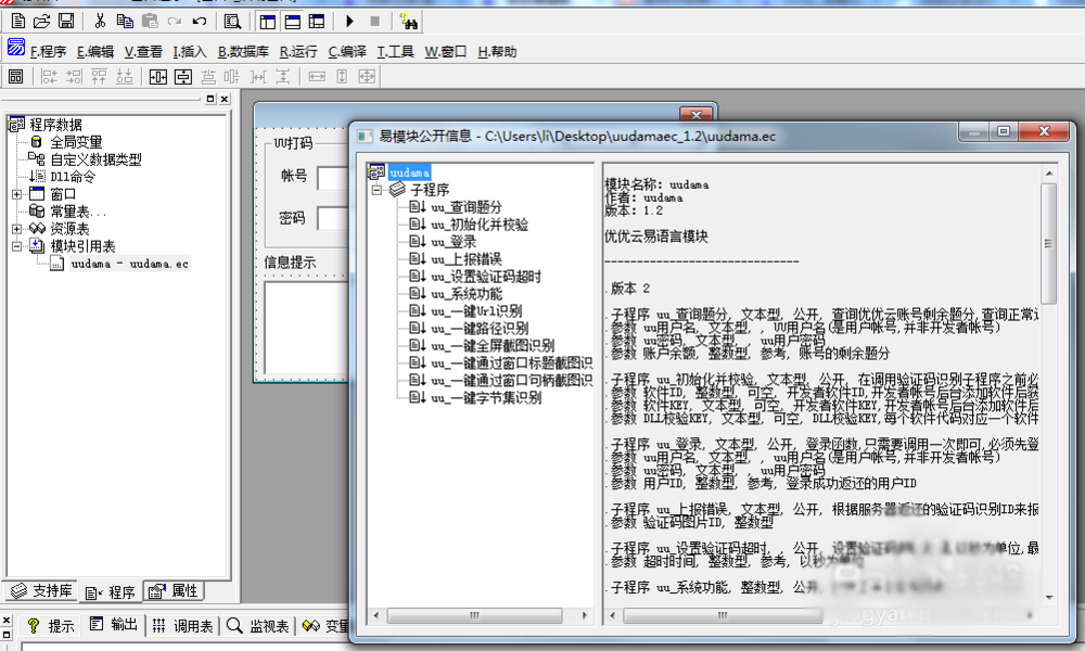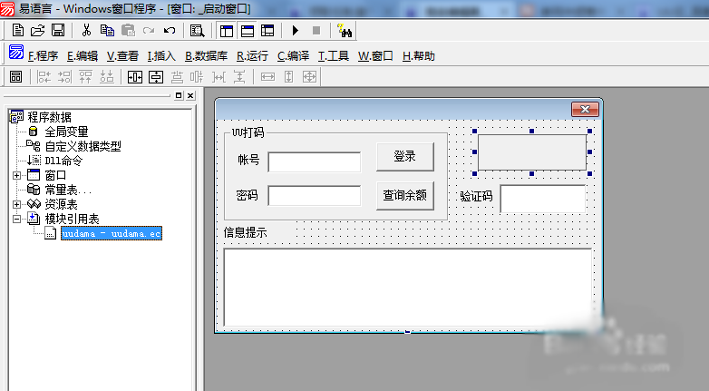 6、接下來我們自己新一個易語言windows窗口程序,添加一些必要組件,如下圖示!同時添加UU云的打碼模塊
