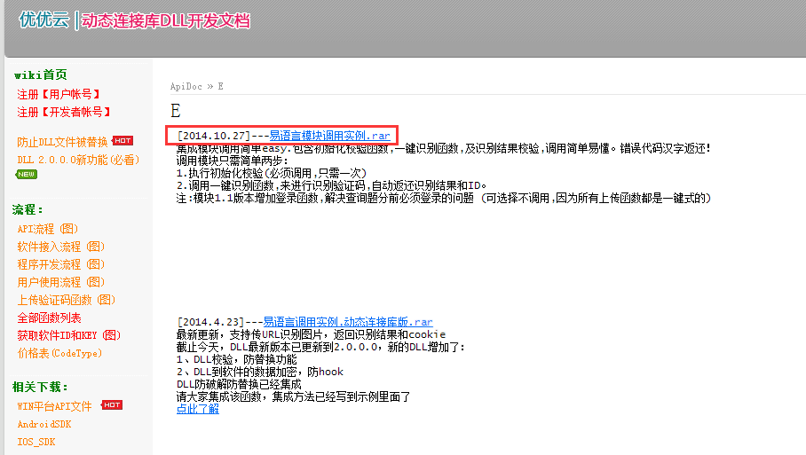 3、然后點進API下載,選用動態(tài)鏈接庫,在這里更是有很多的說明,還有各種編程序語言調(diào)用的例子!