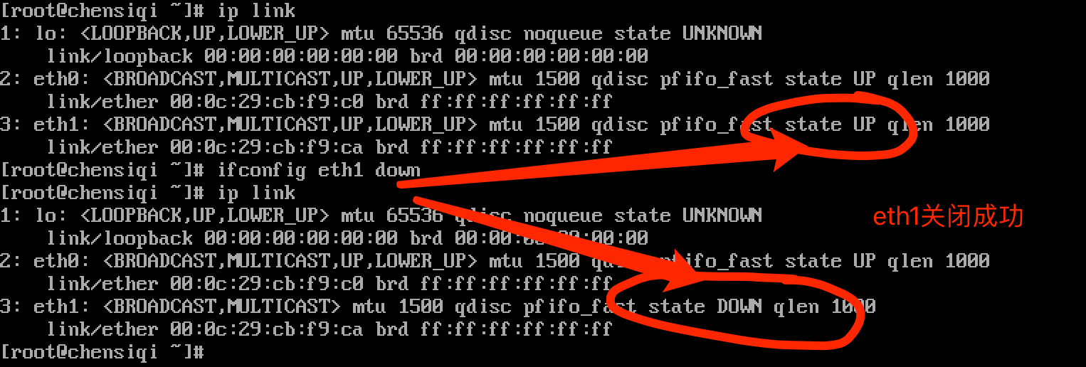 第二步,我們關閉eth1這個網卡設備