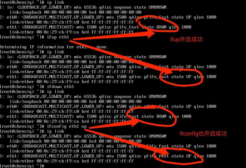 方法一:ifup + 網卡名(ethx) 可以開啟設備
