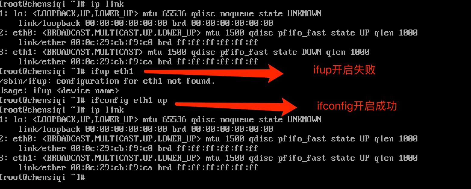 ifup 網卡名與ifconfig 網絡名 up的區別