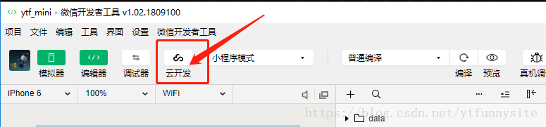 當你成功升級了開發(fā)者工具之后,新建一個空項目或者打開你原本就有的項目,此處其實還是和之前一樣,不一樣的是打開之后你會驚喜的發(fā)現(xiàn),在工具左上方多出一個“云開發(fā)”的按鈕,這也是新版工具安裝成功的標志。提醒一下,如果你是新建項目,一定要填寫APPID,不能選無APPID,不然是使用不了云開發(fā)的,不要問什么了,耶穌來了也不行,騰訊說的。
