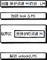 程序中的鎖與現實中的鎖也是類似的,每一把鎖都有自己要保護的資源,這是至關重要的,如圖保護資源 M 的鎖為 LM,就像我家大門的鎖保護我家,你家大門的鎖保護你家一樣,如果程序出現類似我家大門鎖保護你家的情況,那么就會導致詭異的并發問題了。