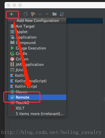在彈出的菜單中點擊“+“,再點擊“Remote“:
