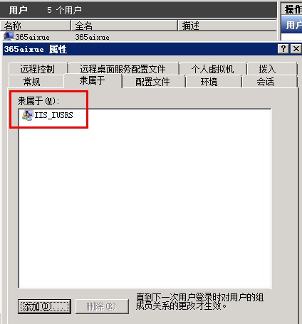 1.在服務器計算機管理中新建一網站用戶用于對網站的匿名訪問,比如用戶名為365aixue