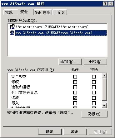 1. 給web根目錄的IIS用戶只給讀權限。如圖: