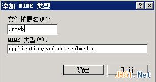 3.在新窗口中,在文件擴展名處填寫“.rmvb”,在MIME類型處填寫“application/vnd.rn-realmedia”,確定。不用重啟IIS服務,現在IIS就能支持rmvb格式文件的下載了。如果還需要支持其它類型的文件,也可參考進行配置,注意在MIME類型和擴展名的不同寫法。