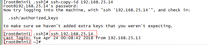 ssh 機器2的ip(默認使用root用戶登錄,也可指定,如:ssh a@192.168.25.14 表示指定由a用戶登錄機器2)