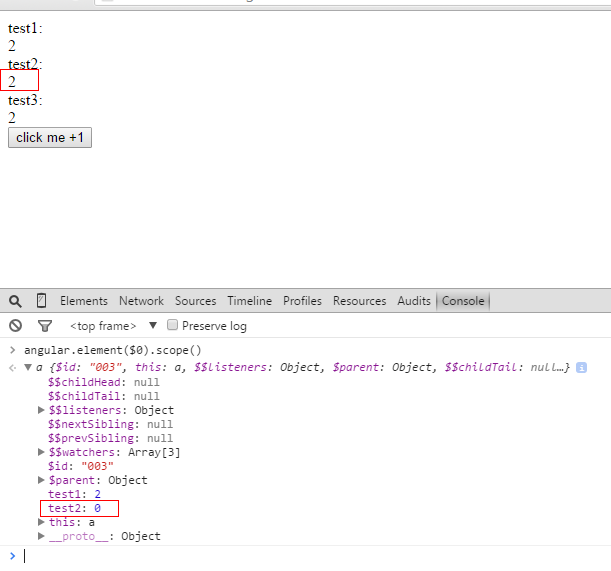1 2 3 4 5 6 $('#btn').on('click',function(e) { var scope=angular.element('#dv2').scope();//jquery+angular實現 scope.test2=scope.test2+1;//直接修改test2的值 console.log(scope.test2); $('#dv3').text(Number($('#dv3').text())+1);//純jquery實現新聞熱點