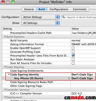 在Build這一tab欄中 找到Code Signing Identity 這項 將其設置為Don‘t Code Sign