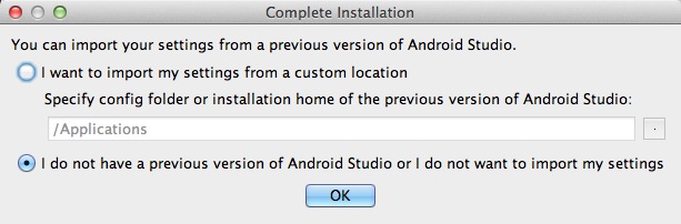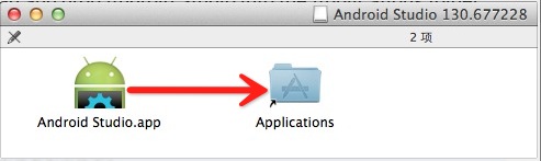 到http://developer.android.com/sdk/installing/studio.html下載安裝包(dmg文件),打開并將Android Studio拖動到Applications中去,拷貝完畢即可,可以到應用程序下將圖標拖動到Dock上。