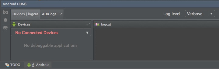 另外,主界面底部有一個名為Android的選項卡,打開可以看到DDMS中的設備信息和Logcat輸出: