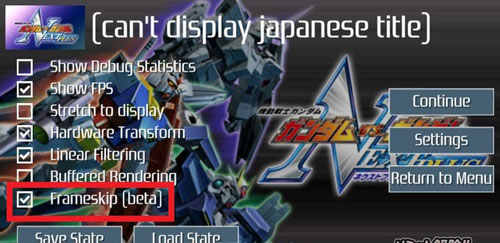 此時我們可以點擊小箭頭進入設置,開啟“Frameskip”(跳幀)