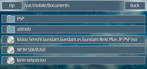 因為iOS設備不能像Android一樣方便地管理機內的文件,所以我們拷入游戲鏡像的時候需要借助到其他工具,這里以iFunBox為例,把游戲鏡像ISO(CSO)放入//car/mobile/documents目錄,如圖所示