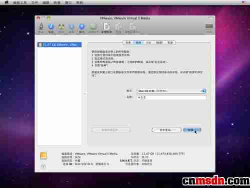創建好虛擬機之后,需要你在剛建立的虛擬機目錄下找到一個擴展名為.vmx的文件,用記事本打開,找到 guestOS = "freebsd-64"一行,將引號里的freebsd-64改為darwin10,改完是guestOS = "darwin10",保存修改后的文件。