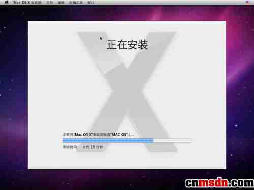 操作完成后關閉“磁盤工具”窗口就可以進行安裝了,根據你的電腦配置不同,大概進行幾十分鐘的安裝,你就可以用上蘋果操作系統了。