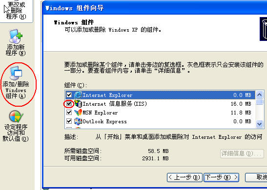 首先來安裝Windows 2000/XP自帶的IIS作為服務器。在這里因為我的機器是XP所以所有截圖都是XP下完成的。