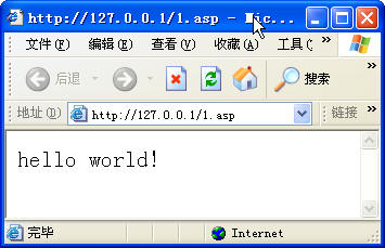 response.write就是顯示的意思,前后的 是asp的標記符號,在這里面的信息都由服務器處理。127.0.0.1是地址,1.asp是文件名。第一天就結束了!