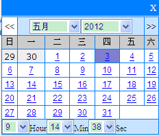 大家可以清晰的看到,紅色畫線部分就是根據時間查詢,時間精確到秒,不應該由用戶手動輸入,不然會大大降低用戶體驗的性能,這是就用到了時間控件,就是這個小時鐘一樣的東西,不過他只是一張圖片而已,我們要知道它后面所隱藏的東西,先給大家展示一下效果吧,當我們點擊小時鐘的時候,彈出: